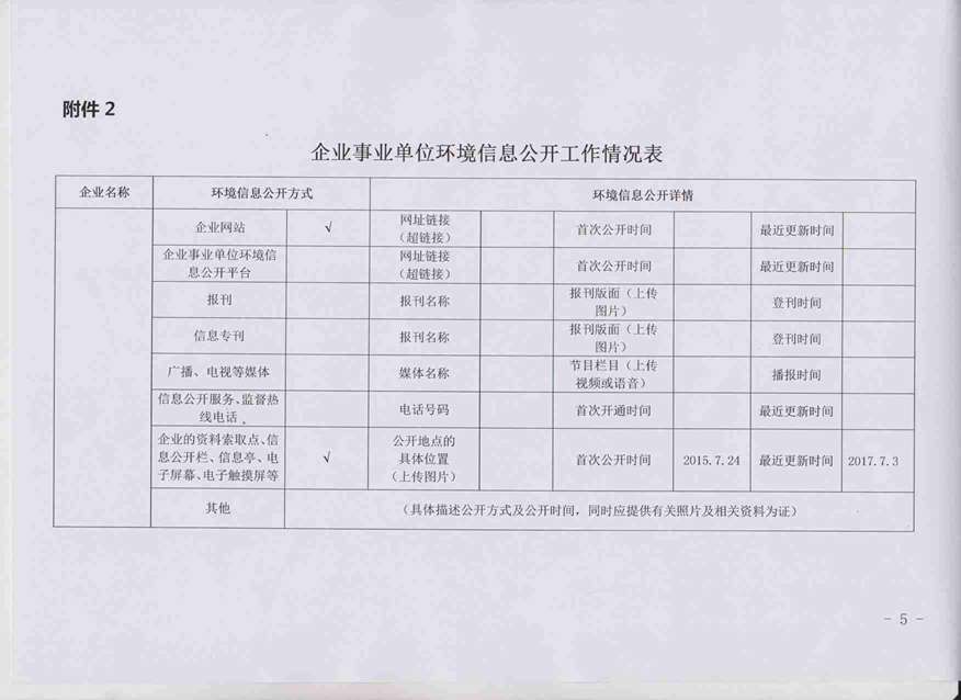 2017年第二季度环境信息公开